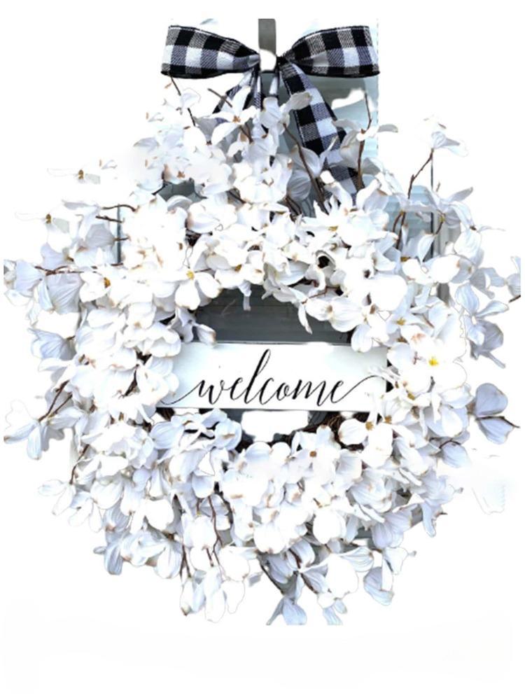 40 см Искусственный венок из форзиции Белый венок Искусственный цветущий кластер Венок в стиле фермерского дома Виноградная лоза для праздника Декор для подвешивания на входную дверь, стену, окно