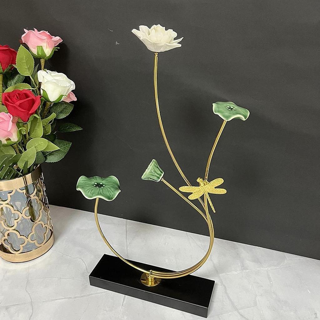 - 【Реалистичный дизайн】: Эта скульптура лотоса искусно выполнена с особым вниманием к деталям и расписана вручную до совершенства.. На нем изображена очаровательная стрекоза, которая добавит художественного штриха и веселья в ваше жилое пространство.. По-настоящему творческое произведение искусства, которое выделяется