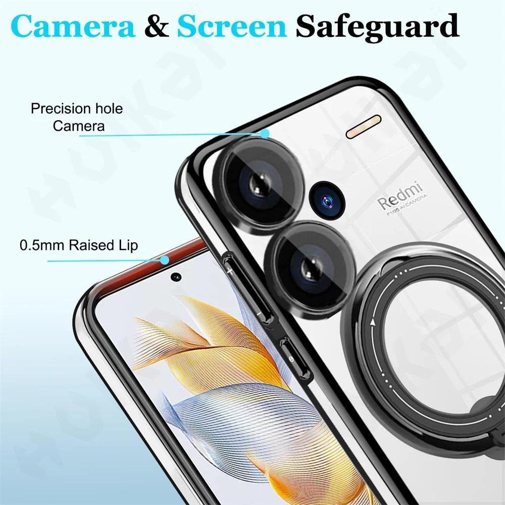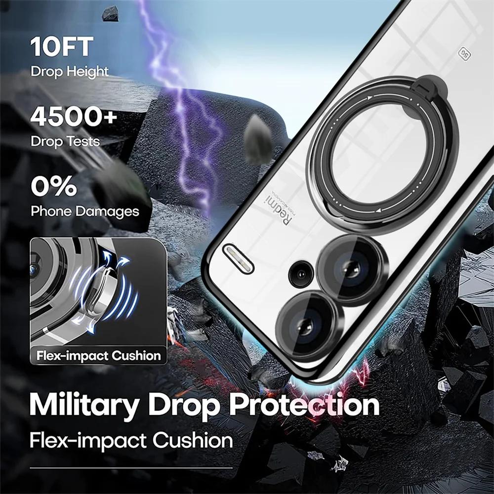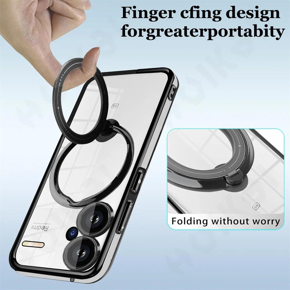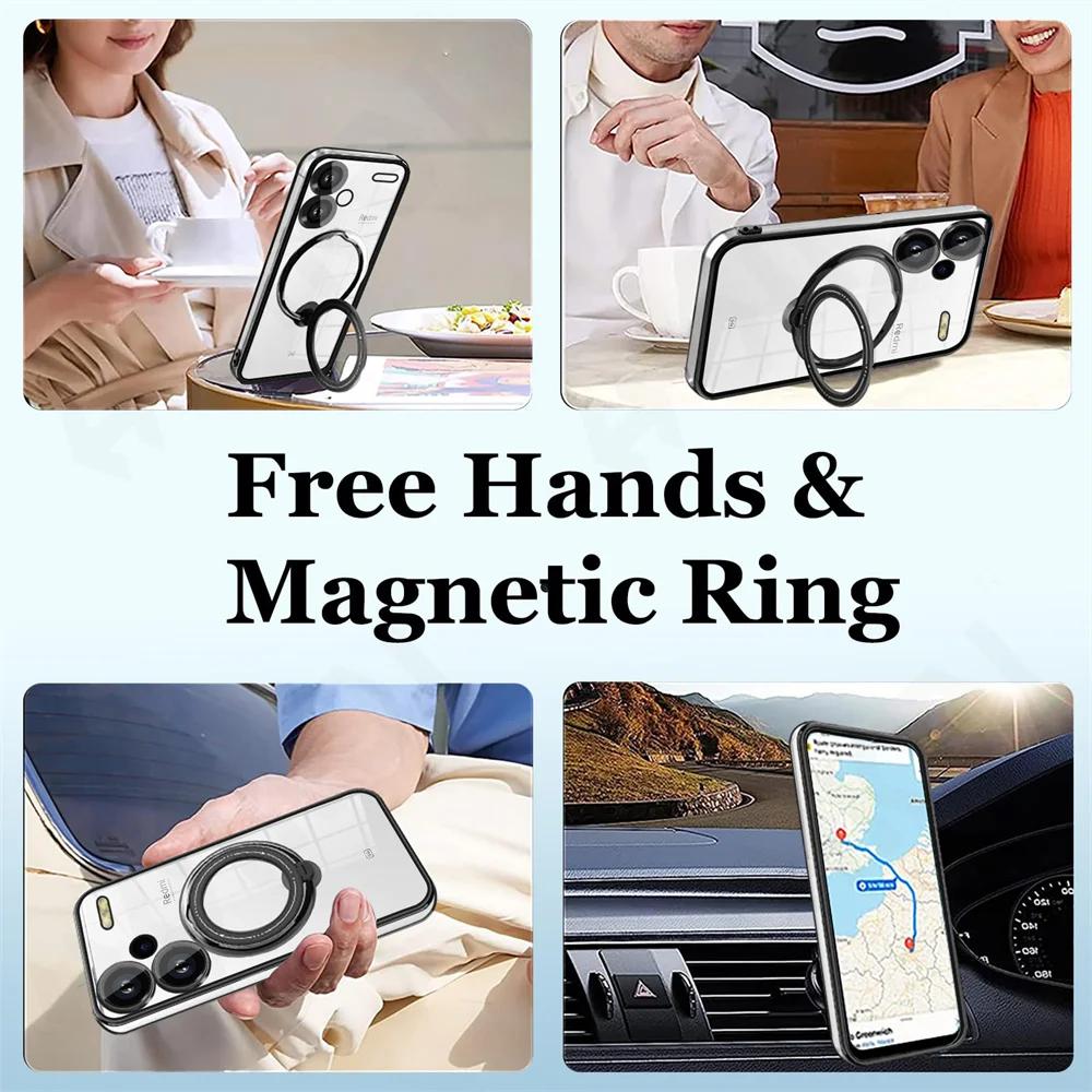Чехол-кронштейн для Redmi Note 13 Pro Plus 4G 5G Xiaomi Poco X6 Pro X6 13T Magsafe Прозрачная подставка с кольцом Беспроводная зарядка Магнитный чехол