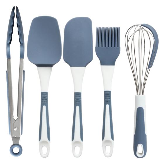 Этот универсальный набор включает в себя пять основных кухонных принадлежностей: лопатка, шпатель, масляная щетка, венчик для яиц и зажим для еды. Независимо от того, смешиваете ли вы тесто, намазываете глазурь или переворачиваете блины, этот набор поможет вам.