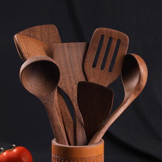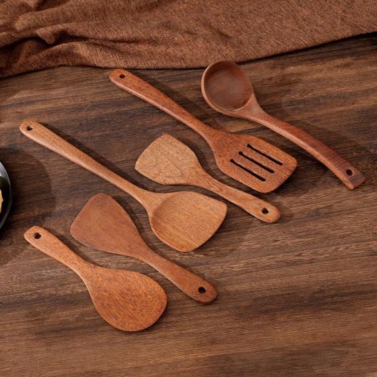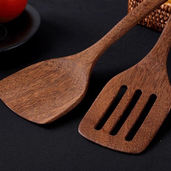 Безопасно с антипригарным покрытием: Эти деревянные лопатки с гладкими, закругленными краями обеспечивают бережное использование на антипригарной посуде, защищая ваши кухонные принадлежности от царапин и повреждений.