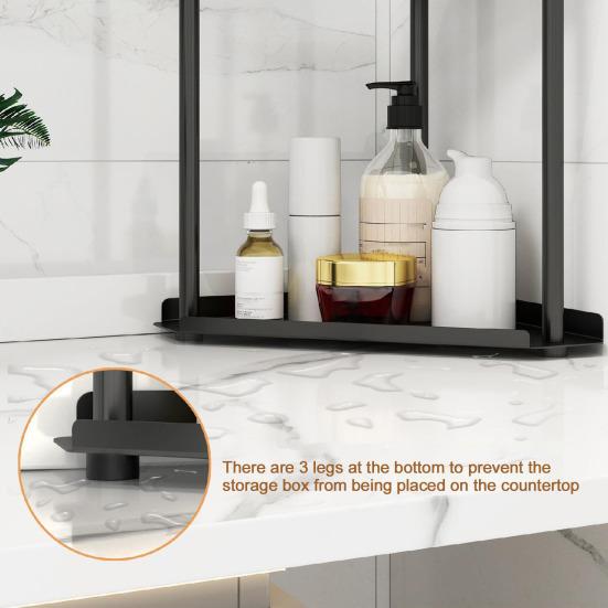 Увеличьте пространство с помощью этой двухъярусной стойки для хранения, изготовленной из прочной углеродистой стали.. Его компактный дизайн идеально помещается на полке в ванной комнате, обеспечивая легкий доступ к необходимым вещам, не занимая при этом слишком много места.