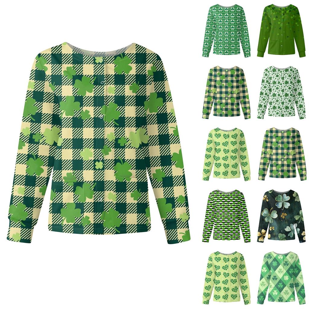 Женская мода с длинным рукавом и воротником-стойкой, однобортная, с принтом ко Дню Святого Патрика