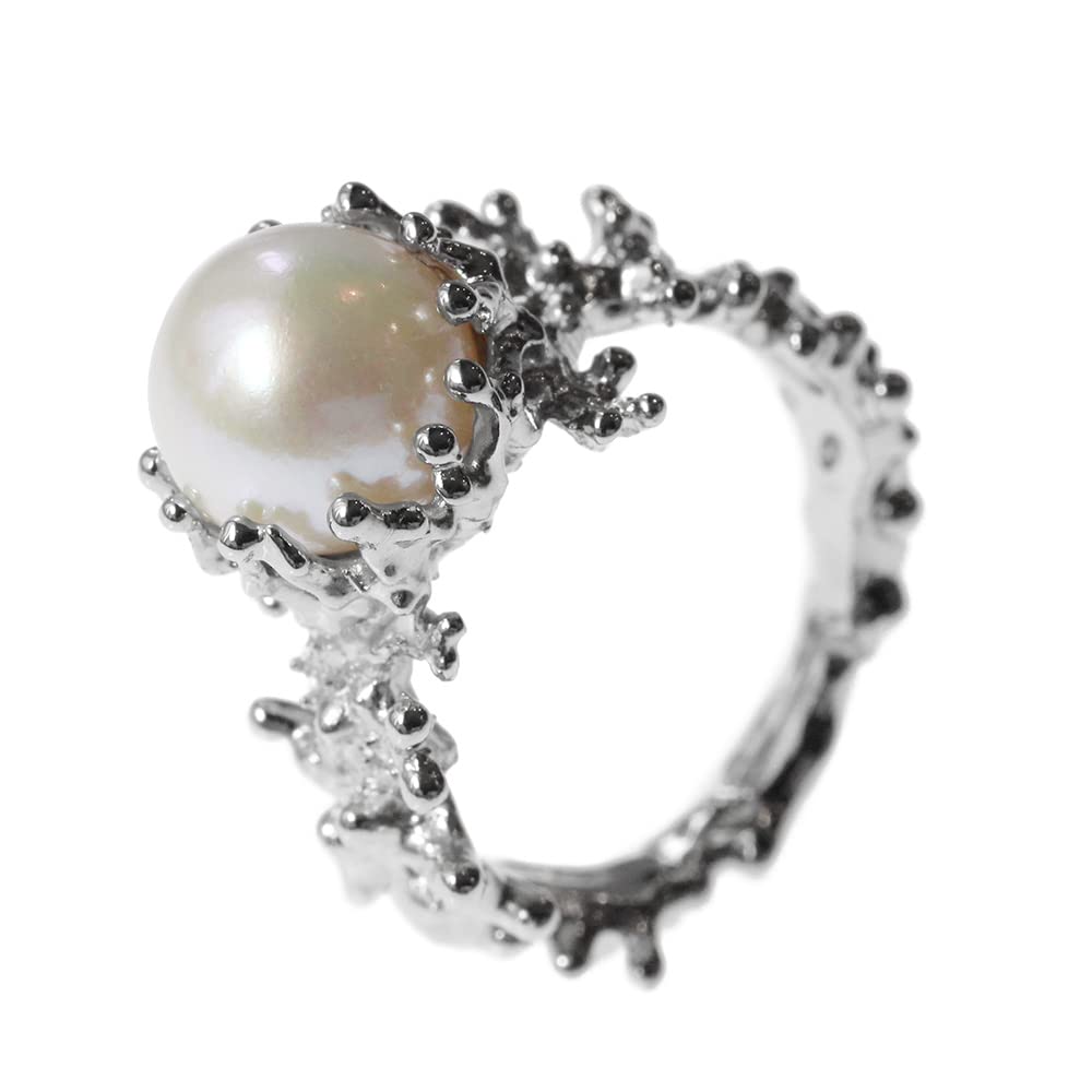 Кольцо универсального размера, выполненное из крупного натурального жемчуга размером более 9 мм.