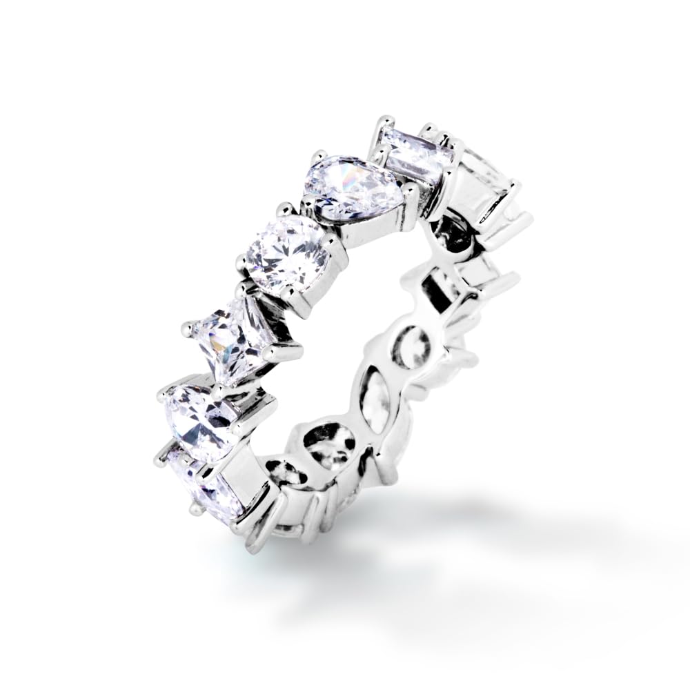 Популярный дизайнерский бренд из Нью-Йорка. Великолепное кольцо вечности, сияющее благодаря синтетическим бриллиантам высочайшего качества и разнообразной формы.