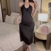 Комплект женского платья, однотонное длинное атласное платье с завязками на шее и открытой спиной, с мягким О-образным вырезом, сексуальная пижама для женщин