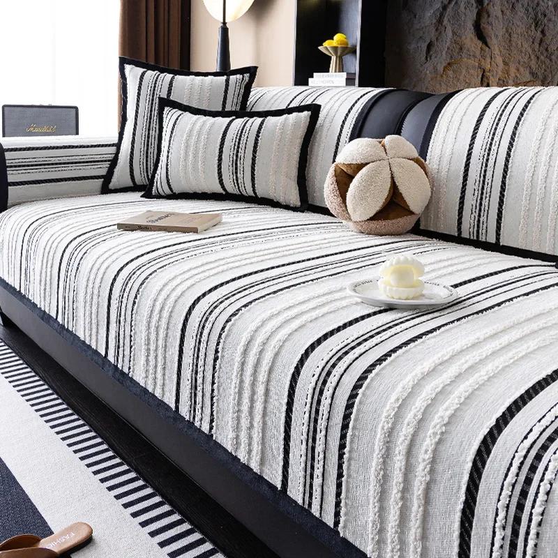 High-grade Couch Cushion Chenille Sofa Cover Color Striped Couch Mat Thickened Sofa Covers for Living Room Universal for Seasons