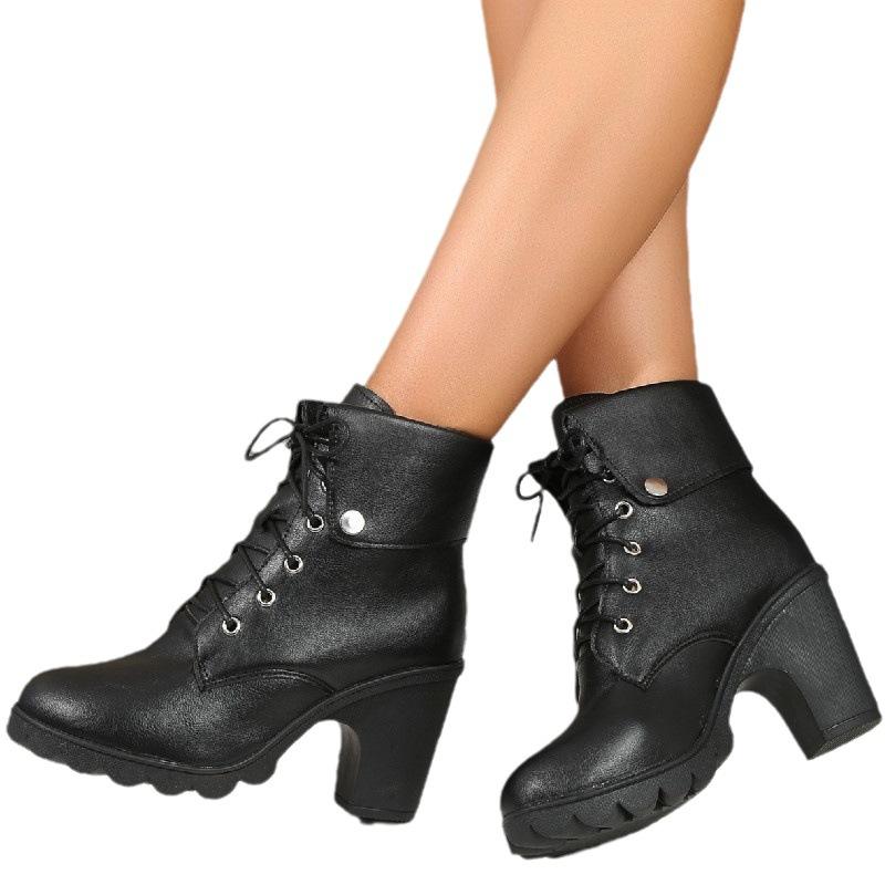 Женские ботинки, новые зимние ботинки с круглым носком, на шнуровке, на толстом каблуке, короткие ботинки на платформе, женская обувь, размер 42