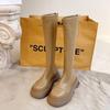 Женские резиновые сапоги осень-зима 2025, зимняя обувь, низкий каблук, длинные ботильоны, круглый носок, платформа, дождевые сапоги до колена, боты для женщин