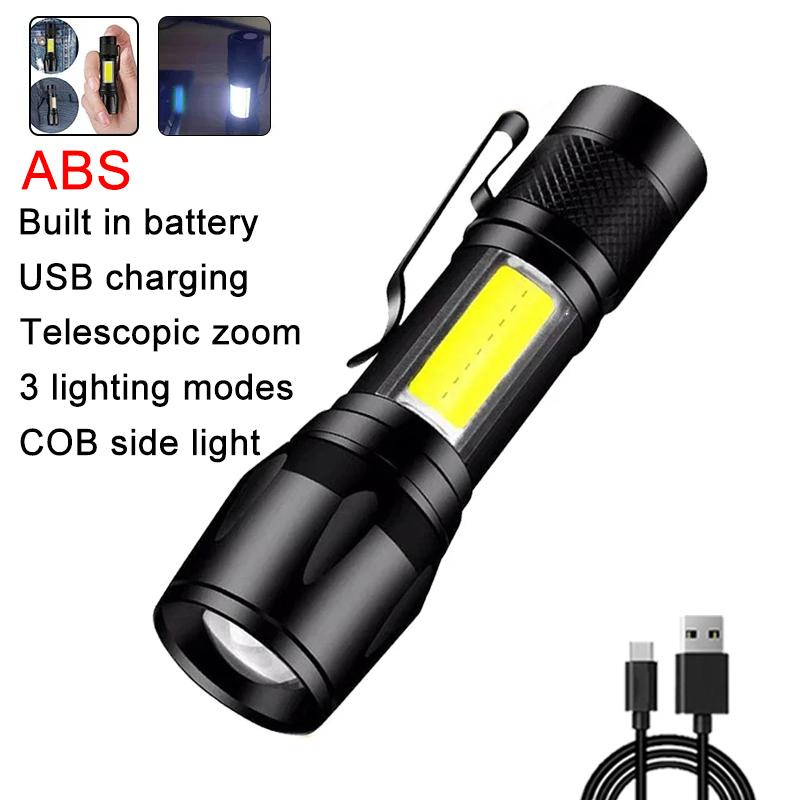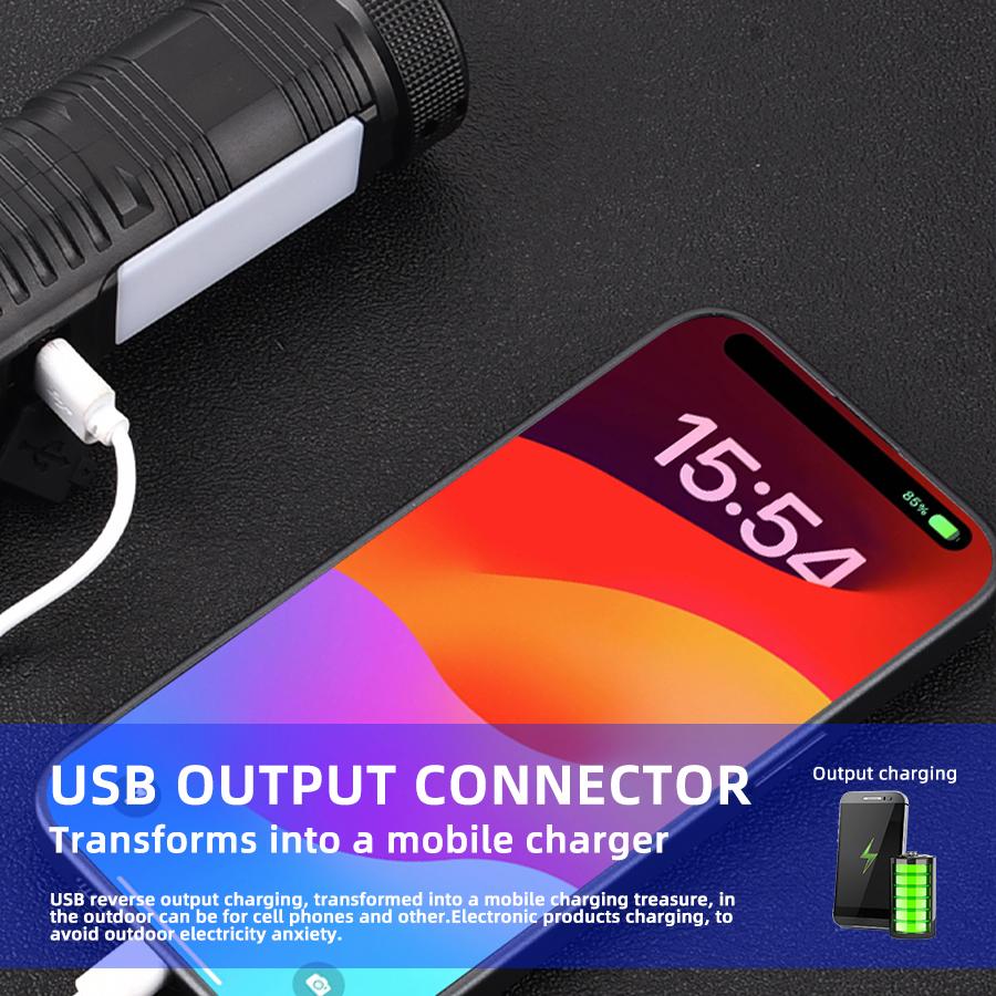 P50 Перезаряжаемый светодиодный фонарик с двумя источниками света COB Портативный фонарь для кемпинга Масштабируемый фокусирующийся фонарь Тактический фонарь