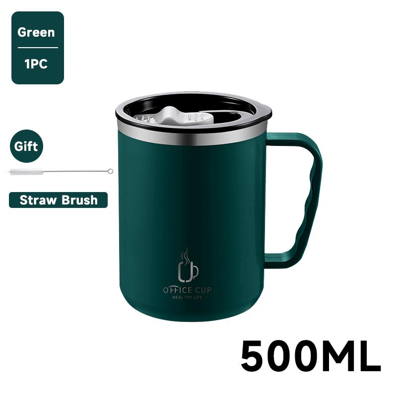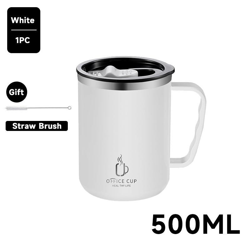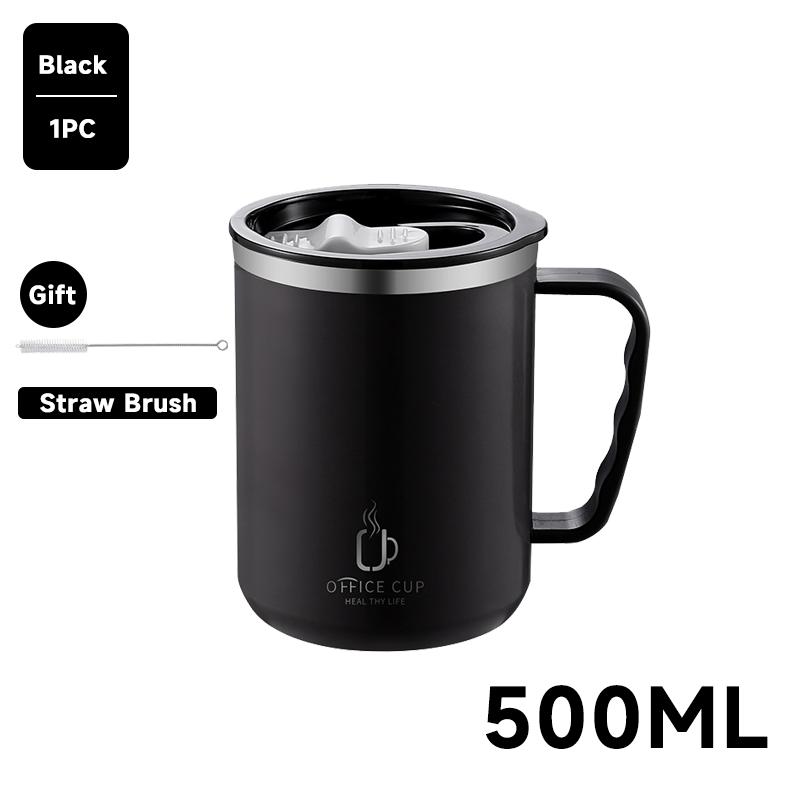 500 мл/17 унций, бутылка для воды из нержавеющей стали 304, двухслойная кофейная кружка, чашка для молока с пластиковой крышкой и ручкой