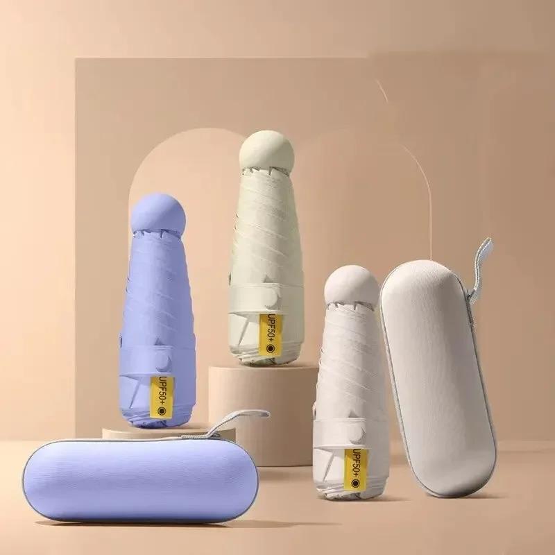 Складной легкий мини-зонт от дождя для женщин, портативный дорожный капсульный 5 складных женских зонтов, ветрозащитные зонты, зонтик