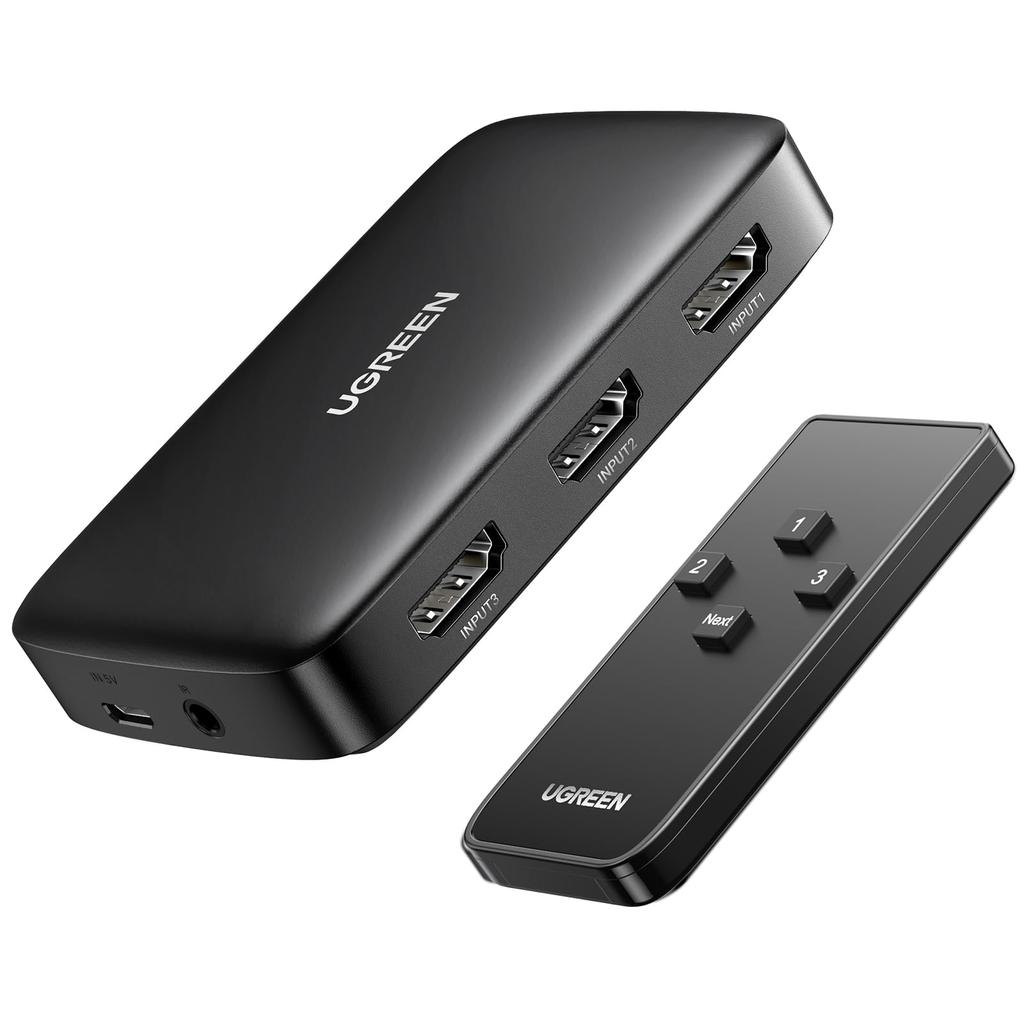 UGREEN HDMI-переключатель, селектор HDMI, 3 входа, 1 выход, с пультом дистанционного управления, 4K HDR CEC 3D, совместимость с PS5, PS4, PS3, WiiU, Xbox, TV Stick, проигрыватель Blu-ray, ТВ-проектор и т. д.