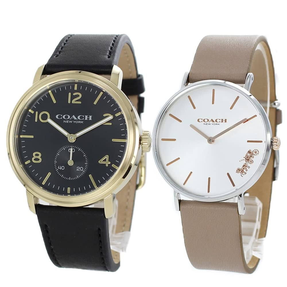 COACH Парные часы коробка для хранения кожаных часов черный бежевый 1460254514503119 Часы [Coach] Мужские Женские [Товар]