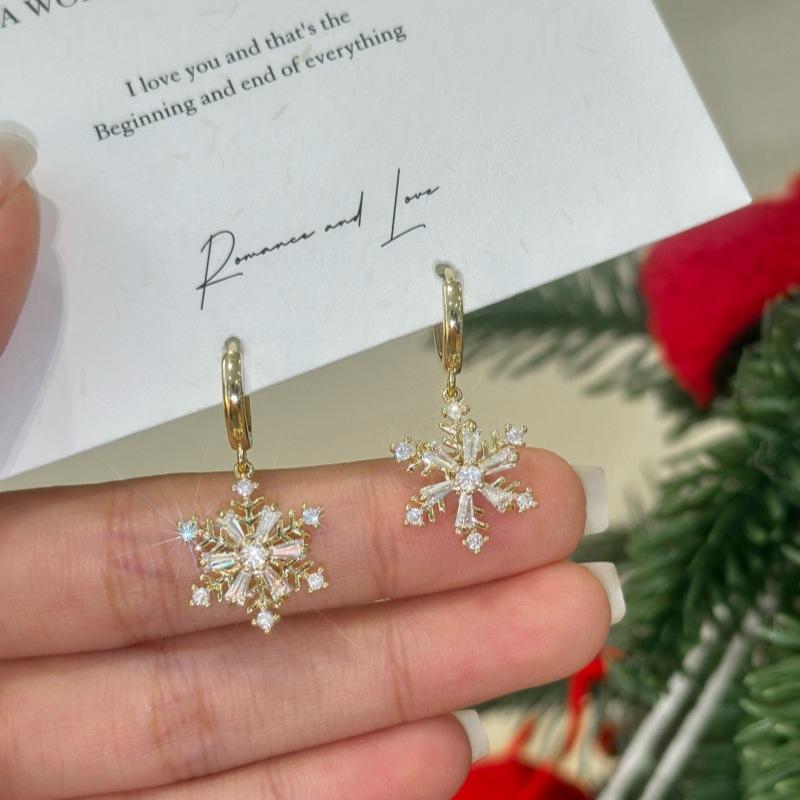 Изысканные цветные серьги-снежинки из циркония и жемчуга для женщин, корейские модные серьги-снежинки, новогодний подарок