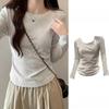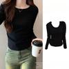 Футболка с длинными рукавами и V-образным вырезом на плече для женщин, осенне-зимняя, корейская мода, шикарный облегающий низ и утягивающий верх