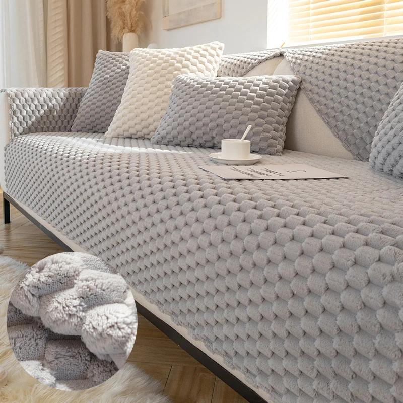 Супермягкий прочный диванный чехол для полотенца в клетку, плюшевый чехол для дивана в форме буквы L, нескользящий, устойчивый к загрязнениям, комбинированный чехол для дивана, декор для диванного полотенца