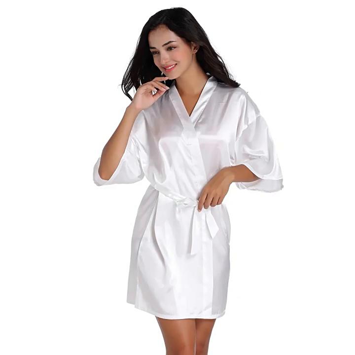 Женский летний тонкий сексуальный атласный халат, однотонный халат с V-образным вырезом и шнуровкой, блестящий короткий халат-кимоно — купить товар онлайн с бесплатной доставкой по всему миру!