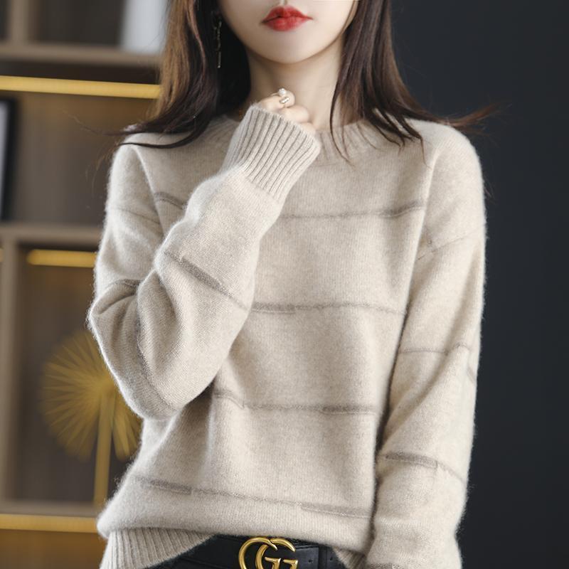 Полосатый свитер с круглым вырезом для женщин, осень и зима, новый свободный темперамент, универсальный базовый трикотажный свитер — купить товар онлайн с бесплатной доставкой по всему миру!