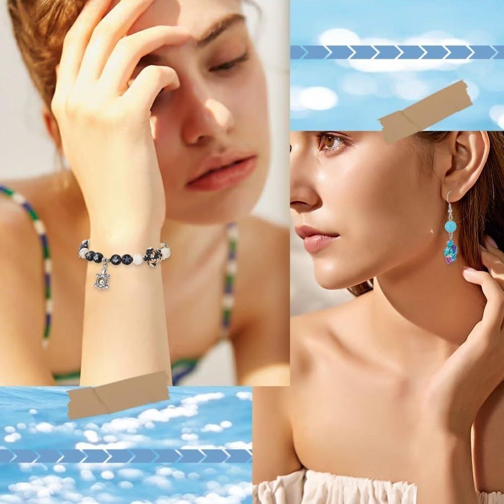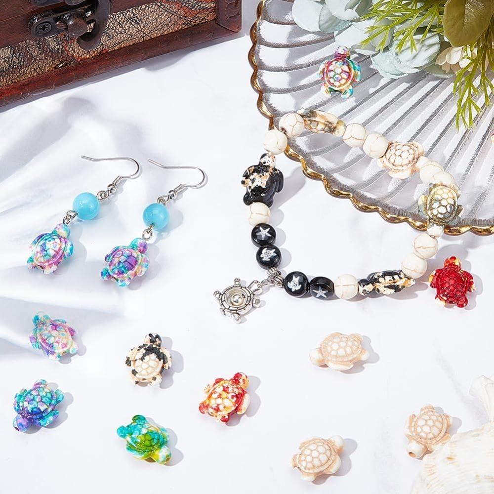 【 Высококачественный материал 】: Бусины в виде черепахи изготовлены из синтетической бирюзы, которая прочна и не ломается, имеет устойчивый цвет, который не выцветает, однородную текстуру и высокую прозрачность.