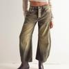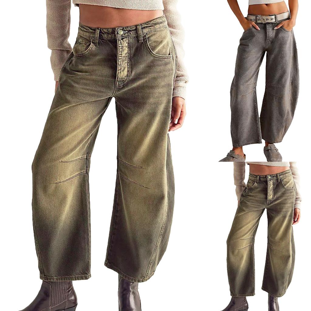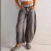 Женские мешковатые джинсы со средней талией, широкие свободные джинсовые брюки-бойфренды, прямые укороченные джинсы-бочонки