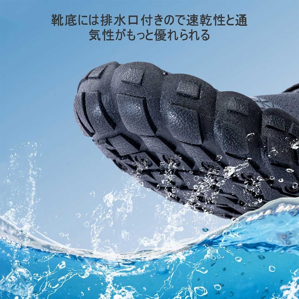 [Дышащие и быстросохнущие] Амфибийные водные ботинки с эластичным сетчатым верхом, которые чрезвычайно дышащие и быстросохнущие.. застежка-липучка (шнурков) делает его удобным для ношения. Легкий, легко надевать и снимать, не обременяет.