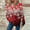 Женская мода с длинным рукавом, завязками на шнурке, капюшоном, пуговицами, V-образным вырезом, повседневная толстовка с капюшоном и рождественским принтом
