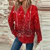 Женская мода с длинным рукавом, завязками на шнурке, капюшоном, пуговицами, V-образным вырезом, повседневная толстовка с капюшоном и рождественским принтом