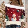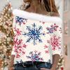 Женский повседневный модный топ с длинными рукавами и открытыми плечами с рождественским принтом из плюша