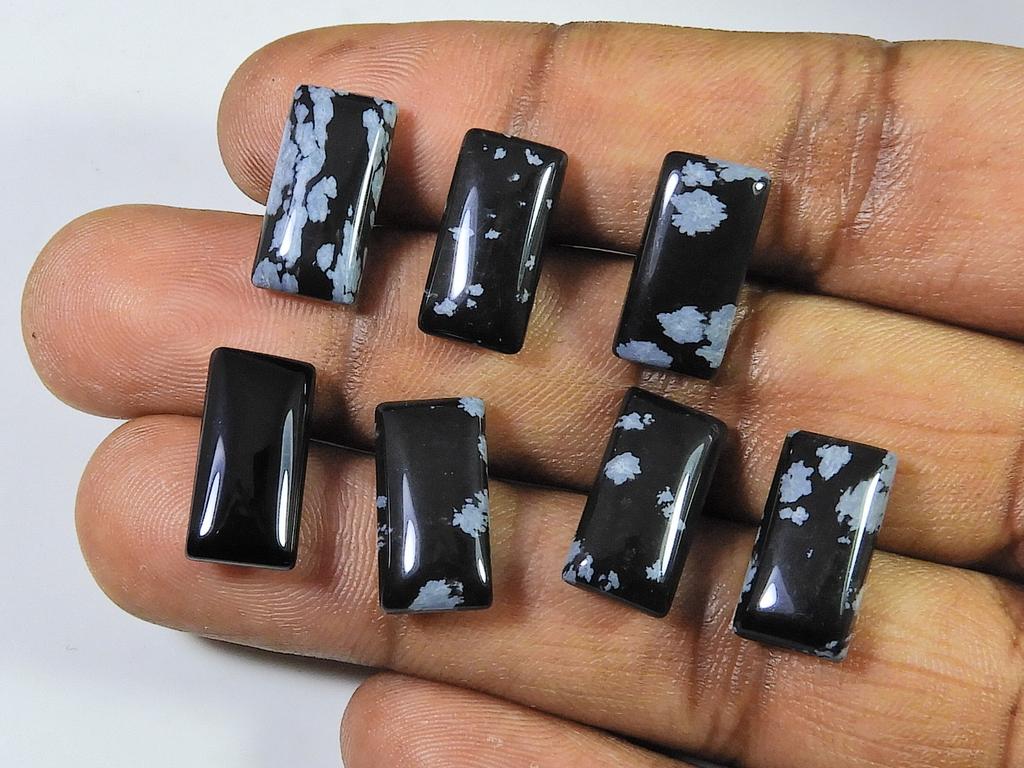 37 карат натуральный снежинка обсидиан прямоугольный кабошон драгоценный камень 7 шт. лот 8X16MM RQ-2006