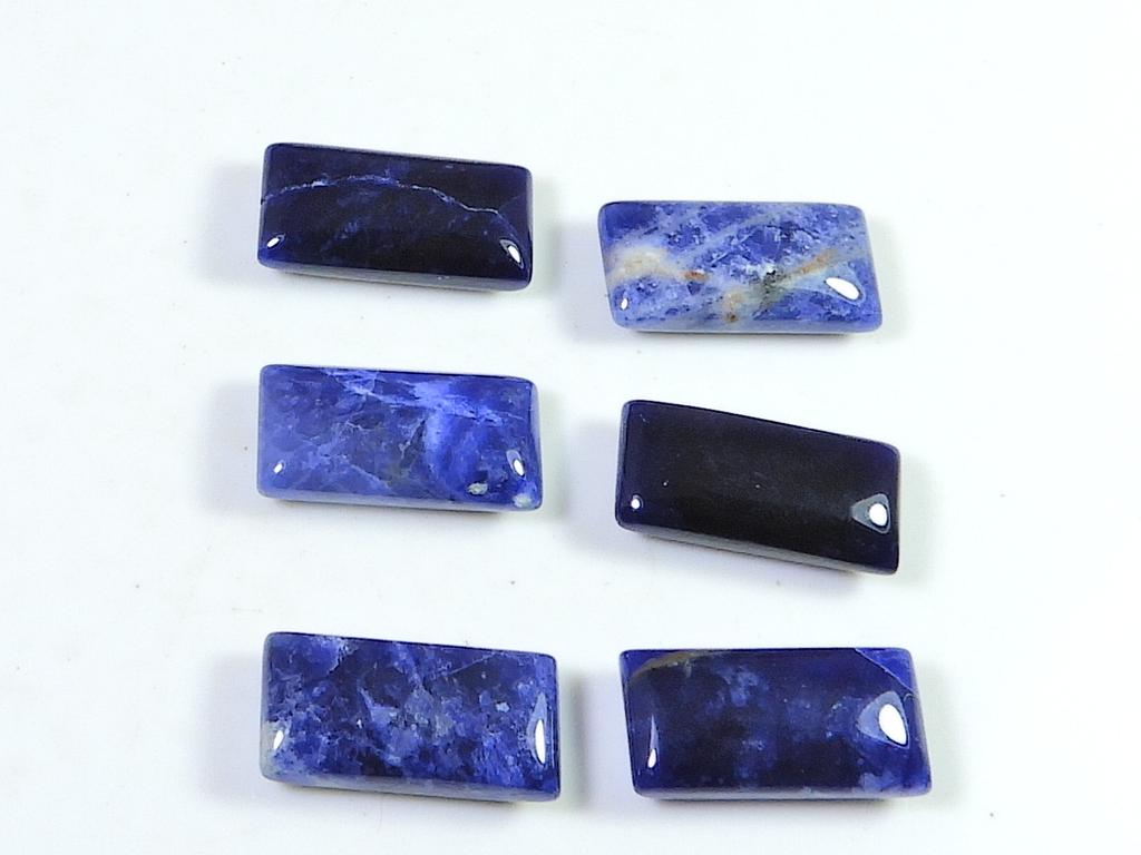 29Cts. Natural Sodalite Rectangle Cabochon Loose Gemstone 06 Pcs Lot 8X16MM RQ-1958