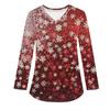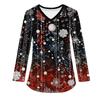 Женская модная рабочая одежда с V-образным вырезом, длинным рукавом и карманом, рождественский принт, футболка, топ