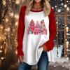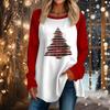 Женская повседневная футболка больших размеров с длинными рукавами и круглым вырезом с рождественским принтом, топ, пуловер