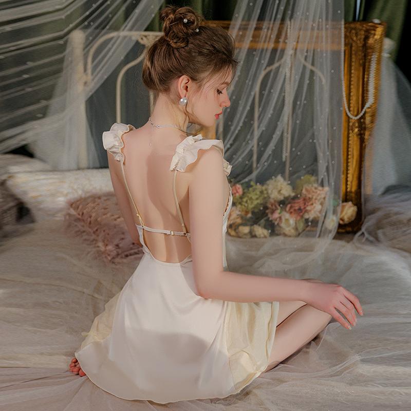 Женское домашнее осеннее атласное элегантное мини-платье с бабочками и открытой спиной с подкладкой