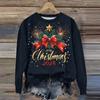 Женская мода круглый вырез пуловер длинный рукав футболка рождественский принт топ