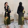 Плюс Размер Женская Весна Лето Прохладная Домашняя Одежда Атласная Пижама Халат С Длинным Рукавом Модный Печатный Длинный Халат
