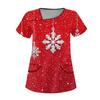Женская рабочая одежда с рождественским принтом, покатый воротник и двухслойные карманы, базовый пуловер сверху
