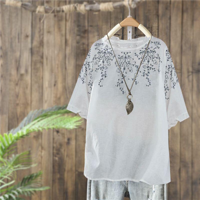 Женская летняя футболка свободного покроя с цветочным принтом для мам среднего возраста в стиле ретро
