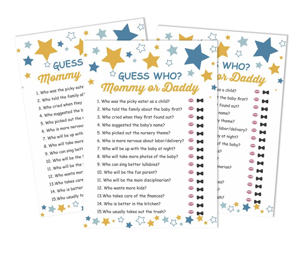 Inkdotpot Кто сказал это Игра Мама или Папа 50 Листов Веселая Игра Baby Shower Звезда Гендерно-нейтральная Вечеринка Поставка