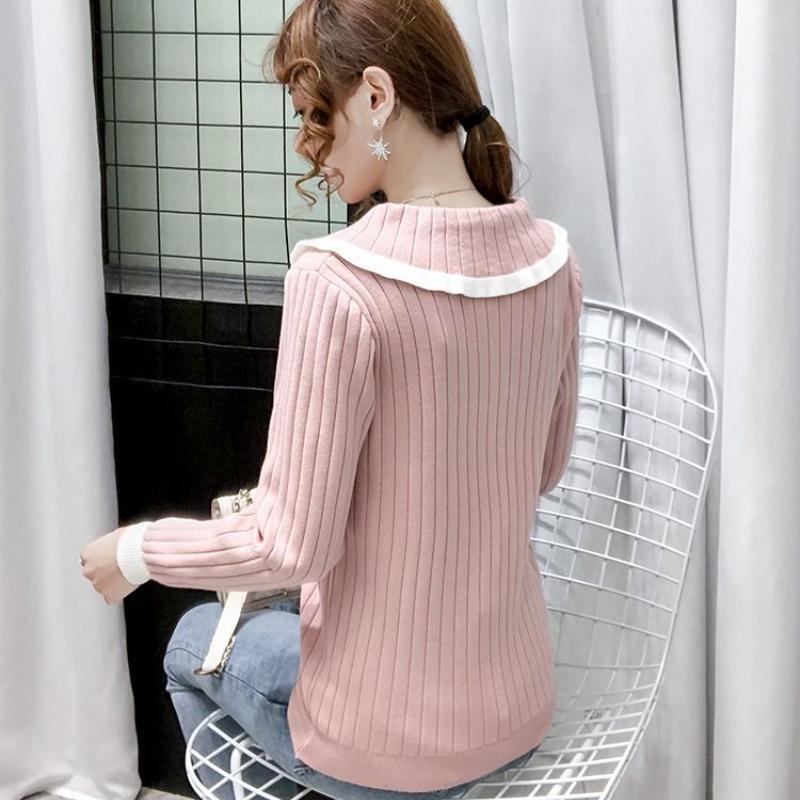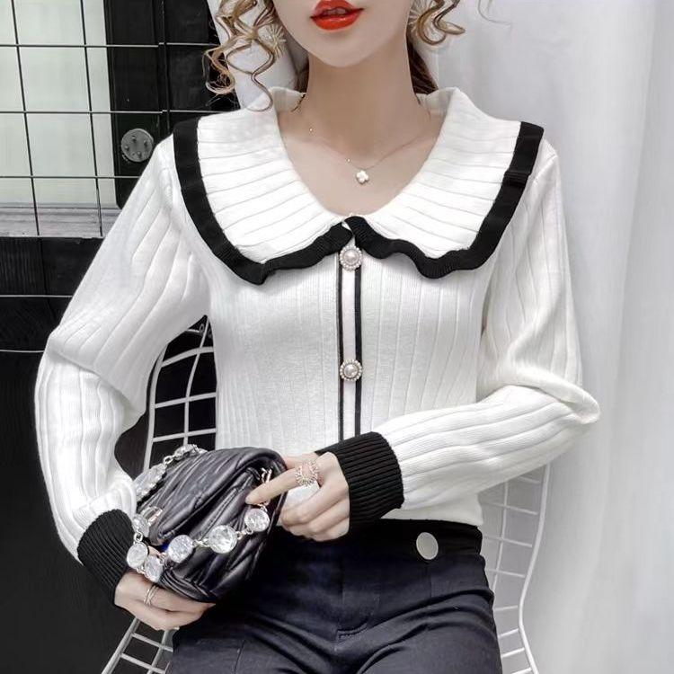Свитер с кукольным воротником, вязаный свитер, женский, с длинными рукавами, осенне-зимний, облегающий и универсальный, модный топ с характером
