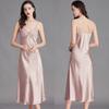 Большие размеры, женская летняя домашняя одежда, платье-комбинация из ледяного шелка, сексуальная кружевная пижама, однотонная длинная ночная рубашка