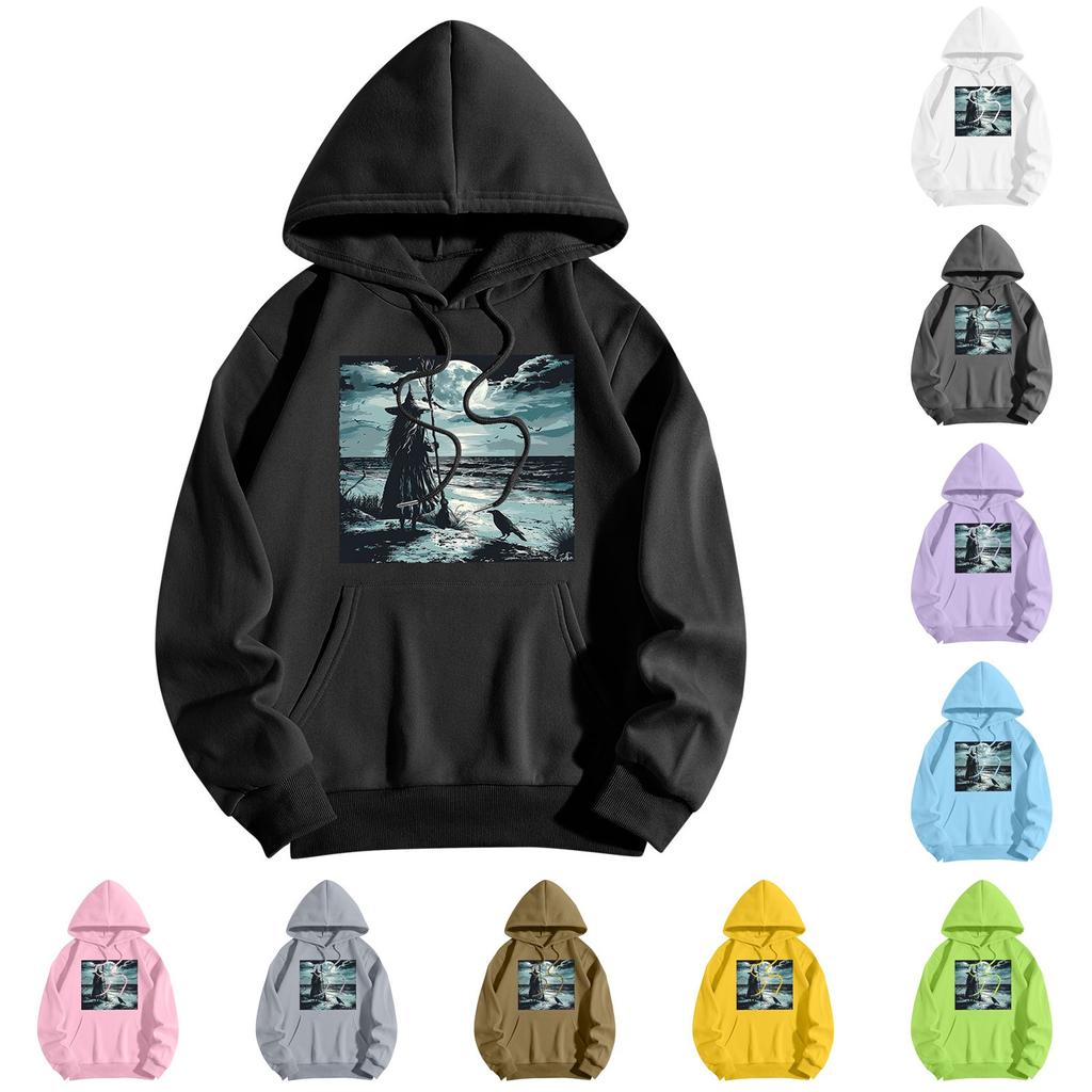 Толстовки для девочек-подростков с длинным рукавом и принтом, повседневные толстовки с графическим принтом, пуловер на шнурке, симпатичная толстовка большого размера