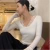 Повседневный вязаный свитер с кружевом и V-образным вырезом для женщин, осень и зима, новые облегающие вязаные свитера, женские топы, элегантные однотонные винтажные женские джемперы 25865 — купить товар онлайн с бесплатной доставкой по всему миру!