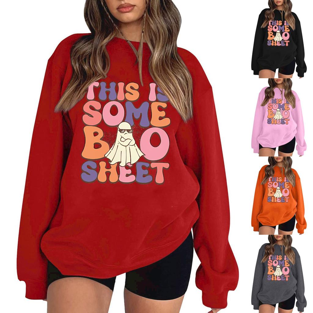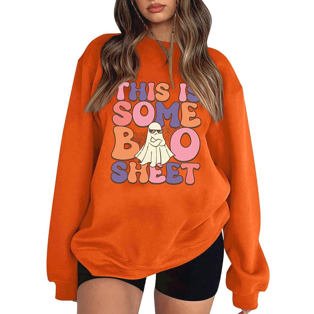 Женский пуловер с принтом Хэллоуина, круглый вырез, заниженная линия плеча, блузка с длинными рукавами