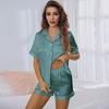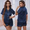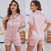 Большие размеры, женская летняя пижама, однотонная домашняя одежда с окантовкой, комплект из 2 предметов, шорты с коротким рукавом, повседневная домашняя одежда