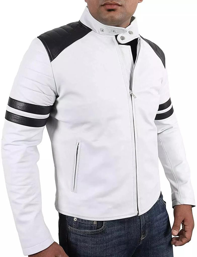 БЕЛАЯ полосатая стильная куртка ручной работы из натуральной кожи ягненка