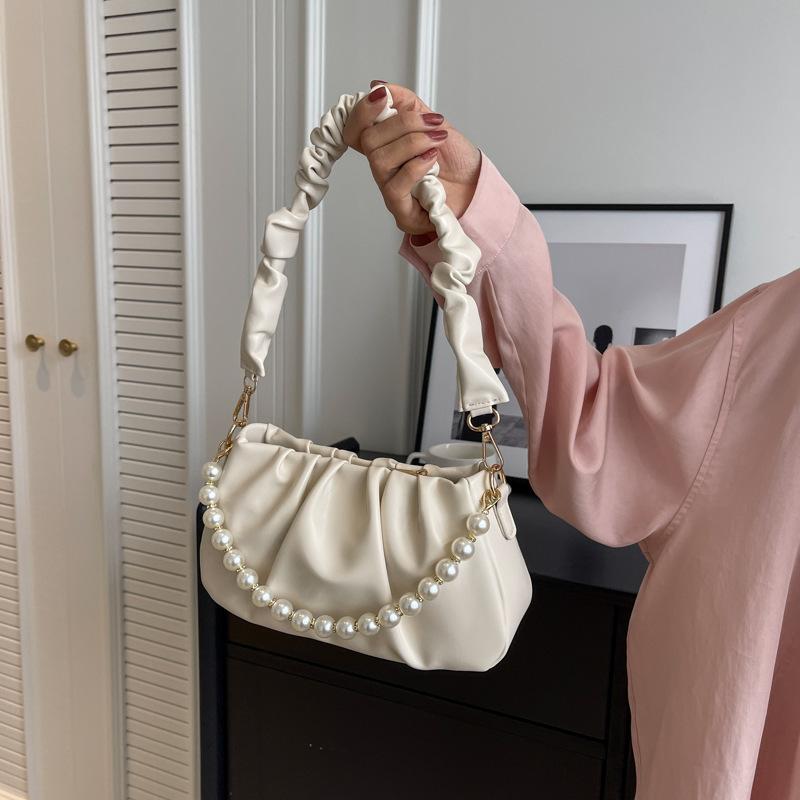 Сумка Niche 2024, весна, новая женская сумка, бисерная сумка-облако, мягкая кожаная плиссированная сумка-цепочка, сумка через плечо на одно плечо, сумка через подмышку