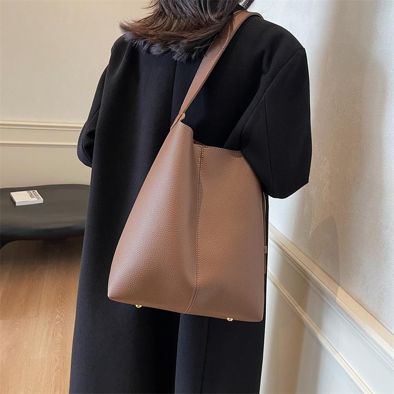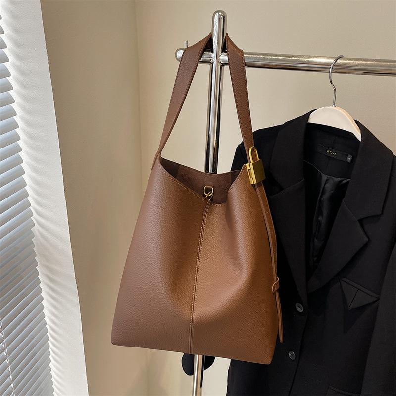 Большая вместительная сумка женская новая осенне-зимняя мода 2024 года, широкополосная простая повседневная сумка-ведро, корейская версия, сумка-мессенджер через плечо