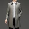Ветровка мужская на пуговицах средней длины с лацканами из шерсти для папы, новое свободное деловое пальто на осень и зиму