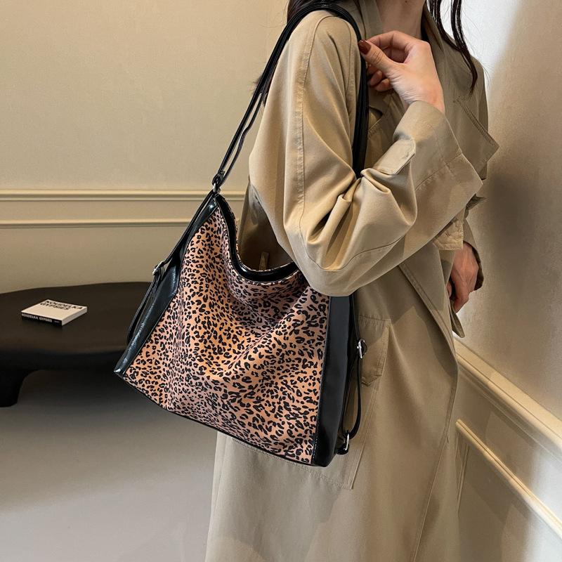 Большая женская сумка 2024 года, осень-зима, новая модная повседневная женская сумка через плечо с леопардовым принтом, многоцелевая сумка-мессенджер большого объема